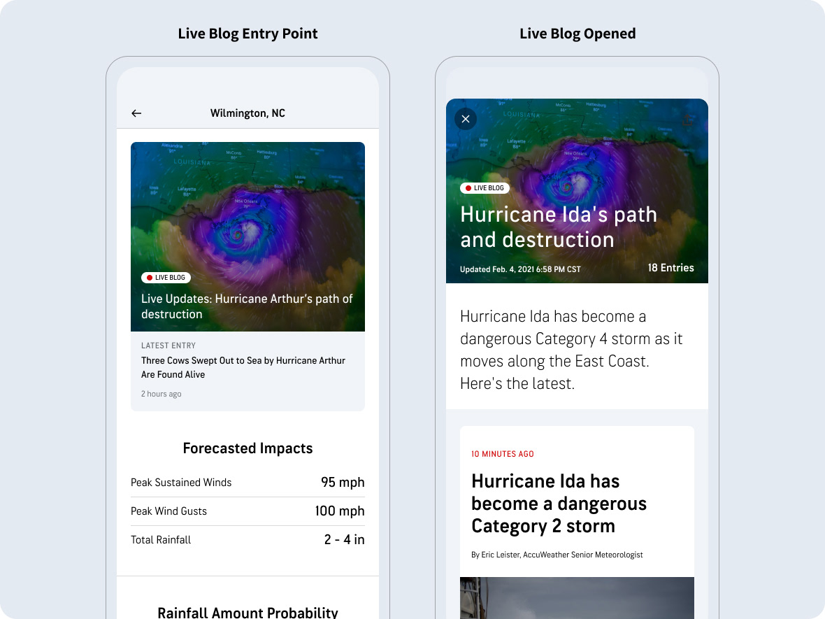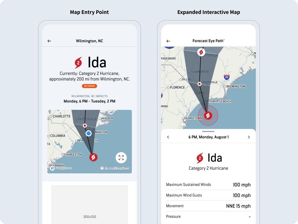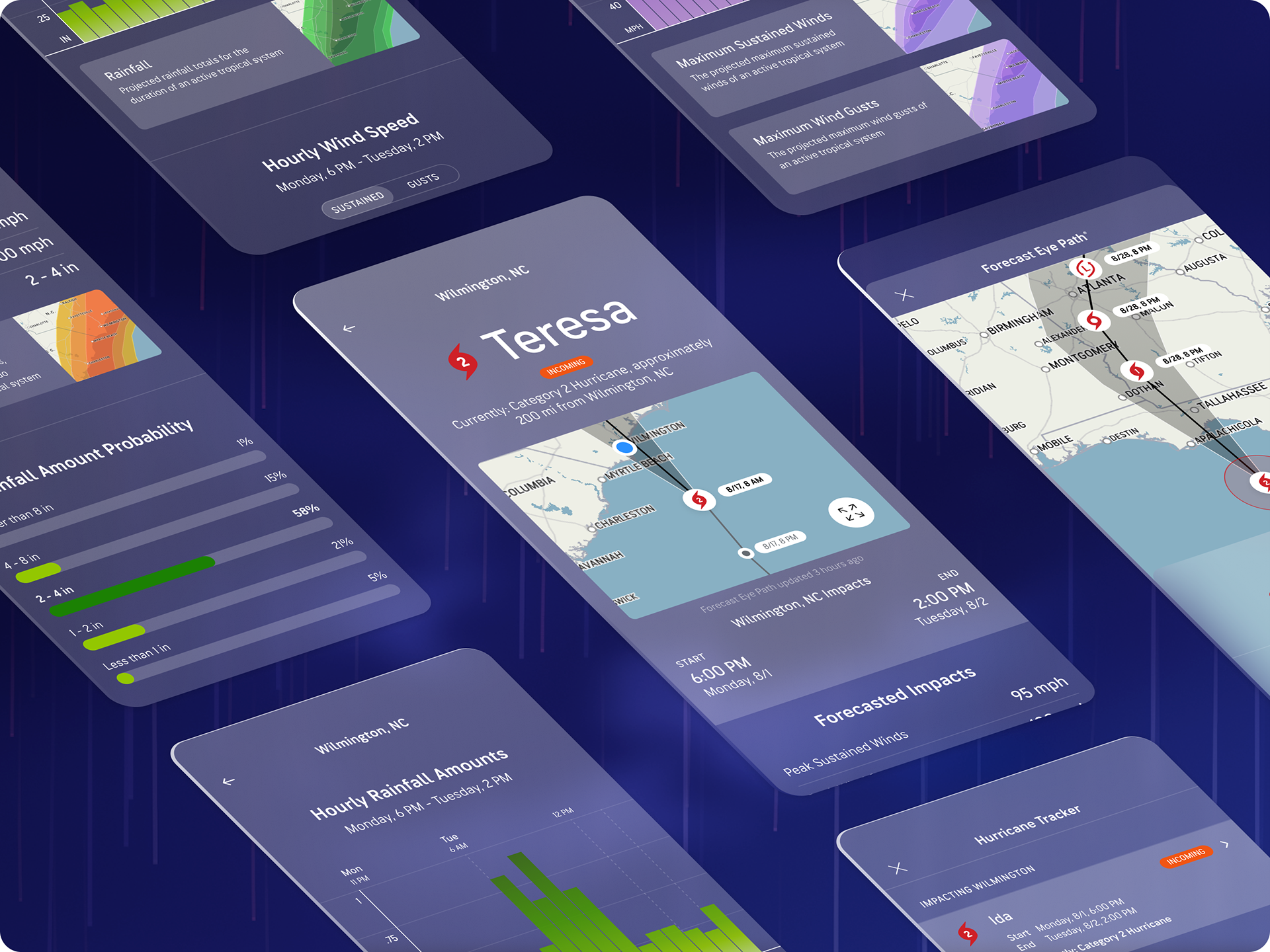 We delivered an innovative product that allows users to easily understand storm data and to be aware of storm impacts by creating a localized experience with an insights into the storms path, rain amounts, and wind speeds. It sets us apart from competitors.