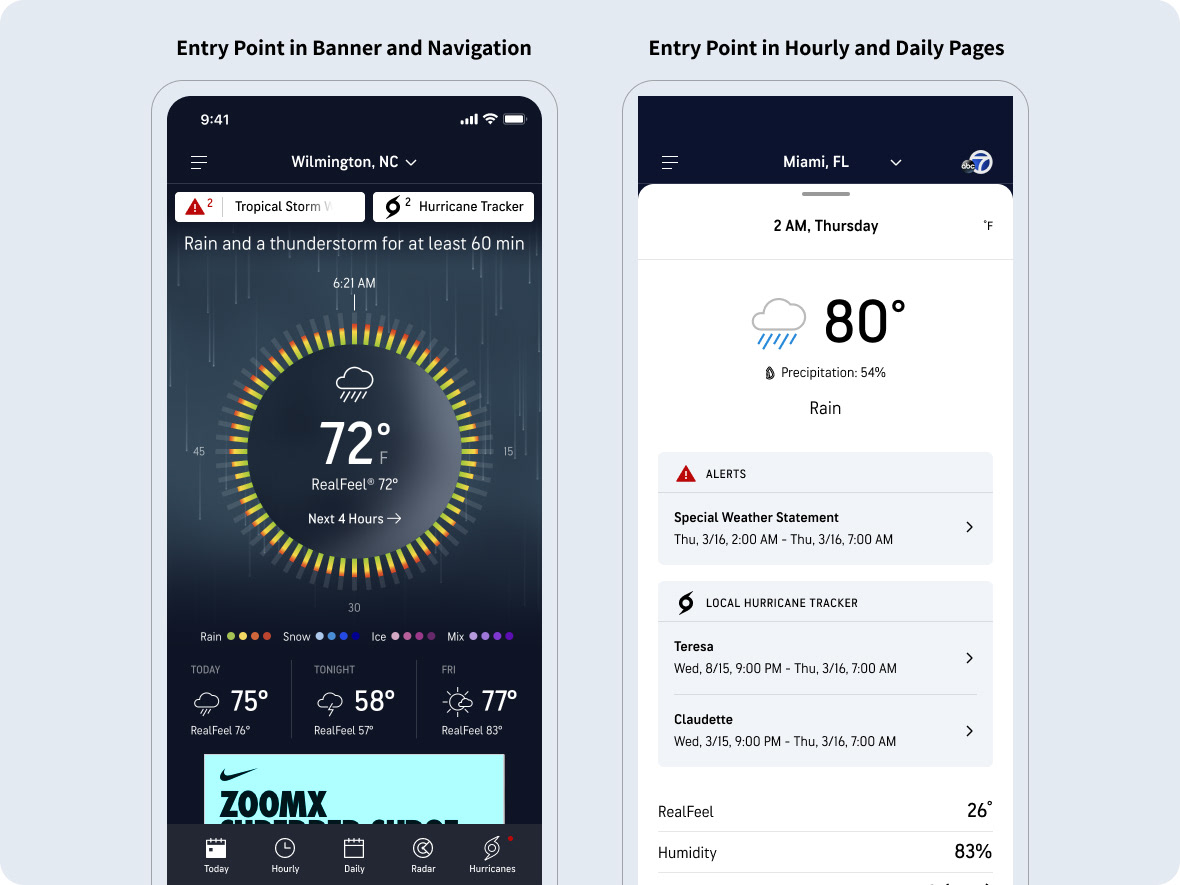 There also wasn’t a localized experience, so to align more closely with our hyper-local forecasting philosophy, we created a new local hurricane tracking experience to help enhance our products, provide tremendous value to our users, and really set us apart from other weather apps.